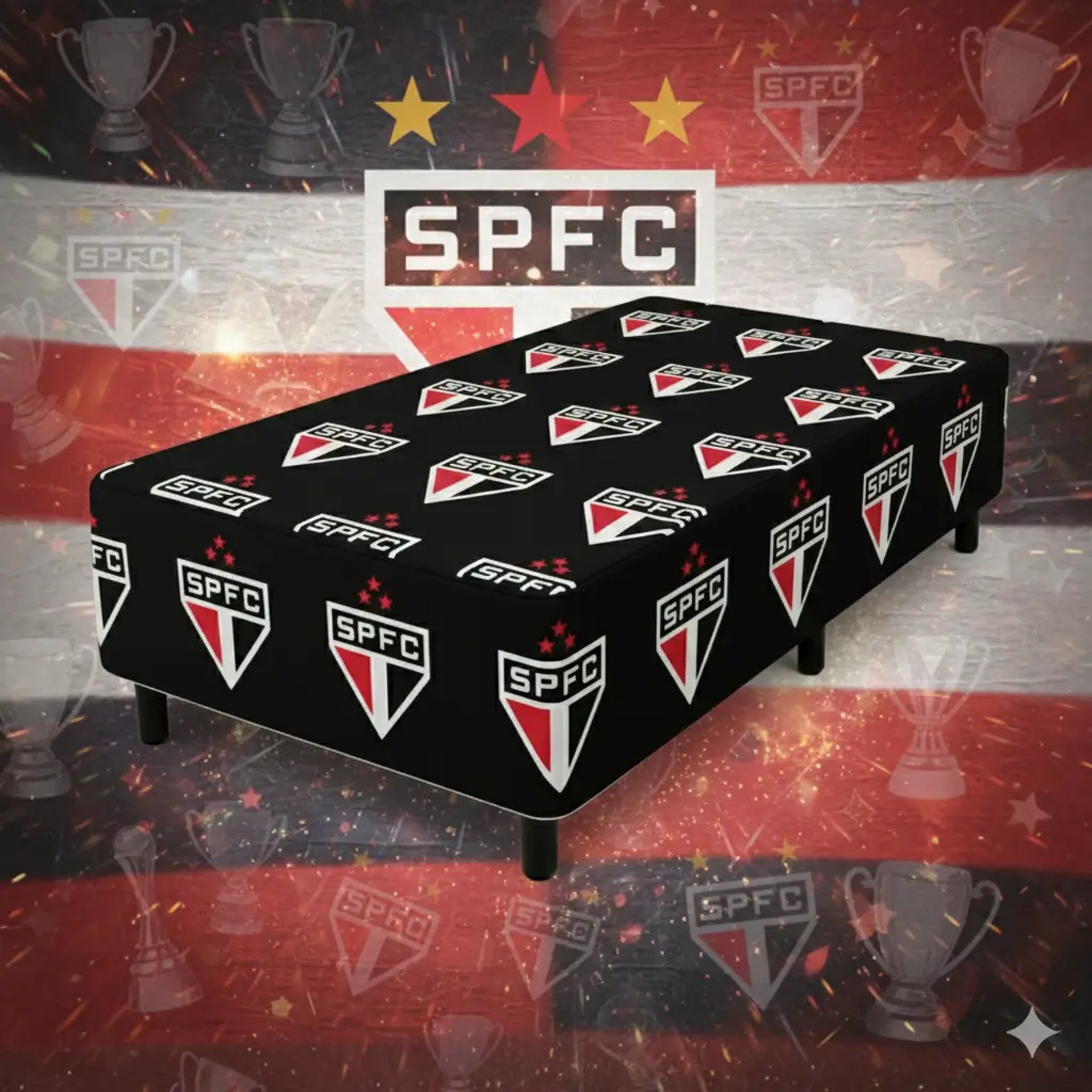Bases de cama box personalizadas com a bandeira do seu clube, feitas direto na fábrica